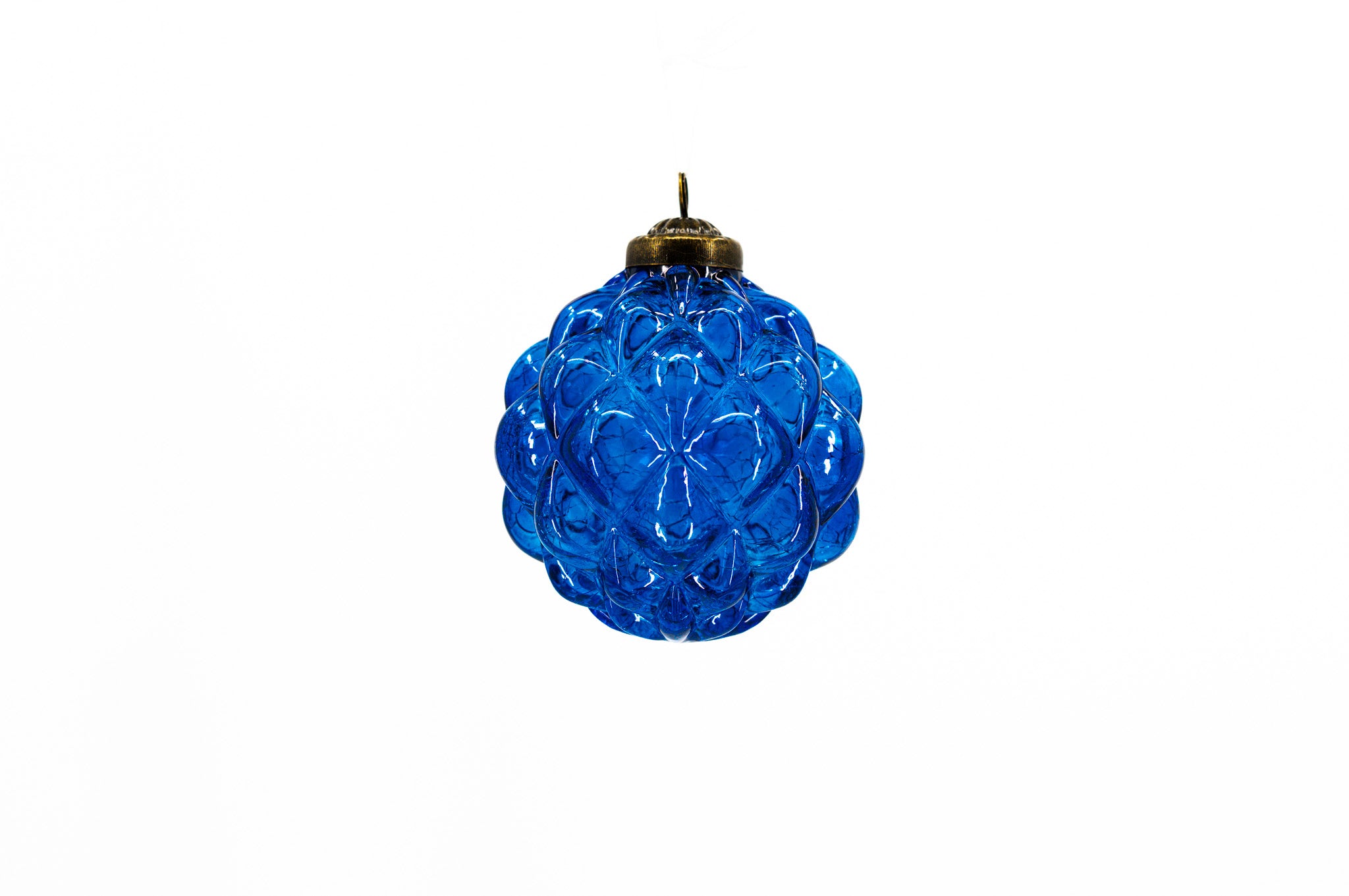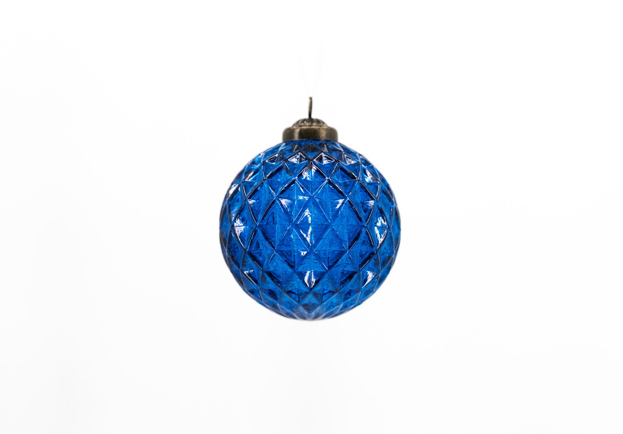 Elevate your holiday décor with our Blue Glass Textured Ornaments, a stunning duo that blends timeless craftsmanship with bold seasonal color. Each 4" ornament features intricate textural detailing — one with a diamond-cut pattern and the other with a sculpted petal design — both catching and reflecting light beautifully. The rich sapphire hue adds depth and elegance, making these ornaments a striking accent for any tree or garland.