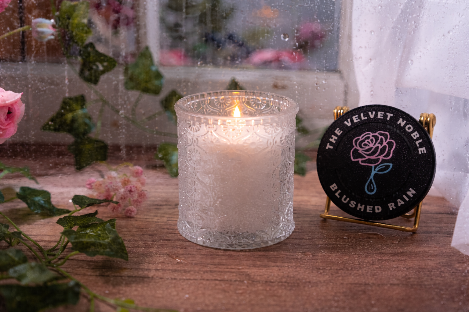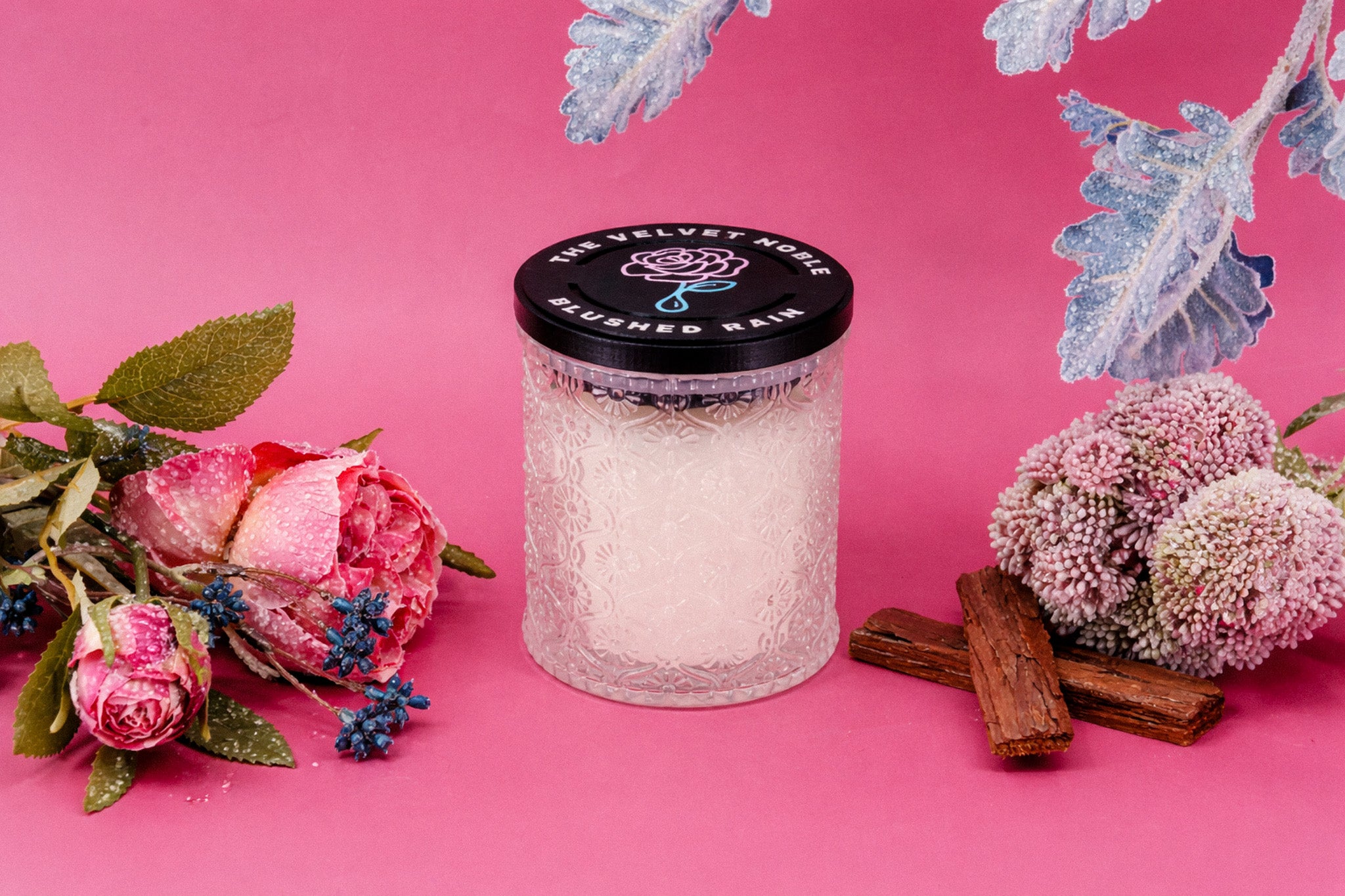 Blushed Rain opens with ripe berries and delicate blooming florals, softened by fresh rainwater and grounded in gentle woods. It creates a light, airy warmth that feels fresh, feminine, and quietly uplifting - like the beauty that only comes after the rain.