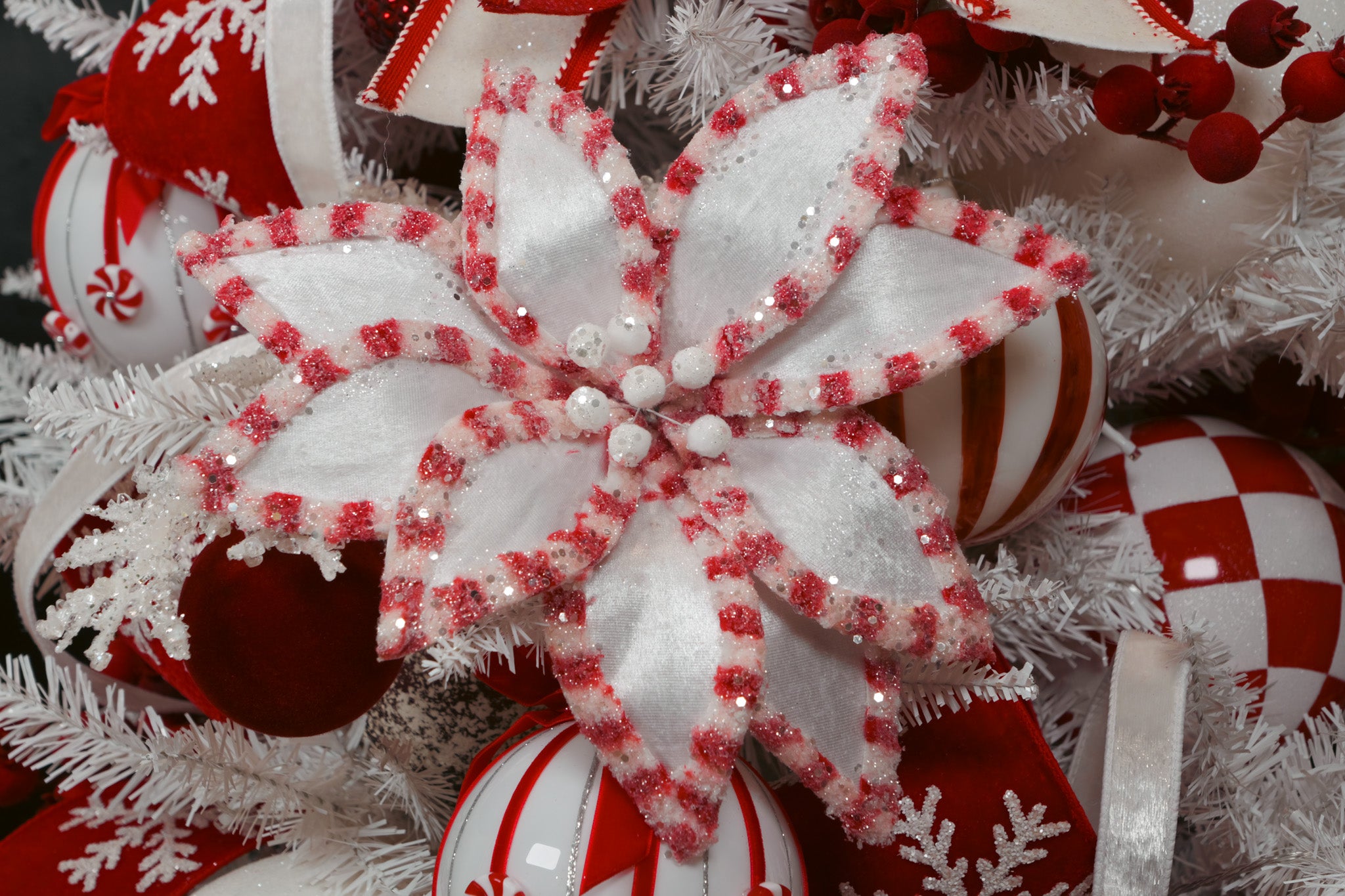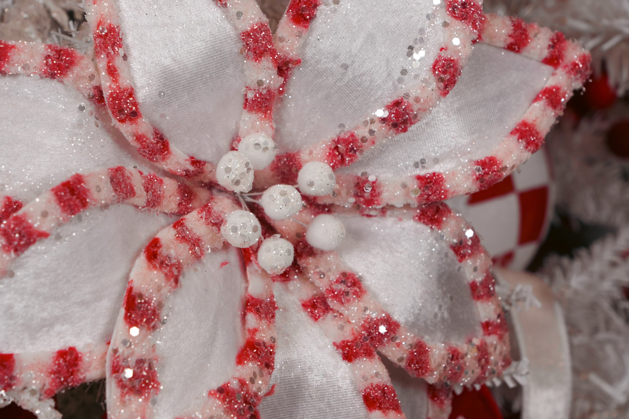 The Candy Frosted Poinsettia Pick adds a joyful and elegant sparkle — the perfect blend of sweetness and sophistication for your holiday season.