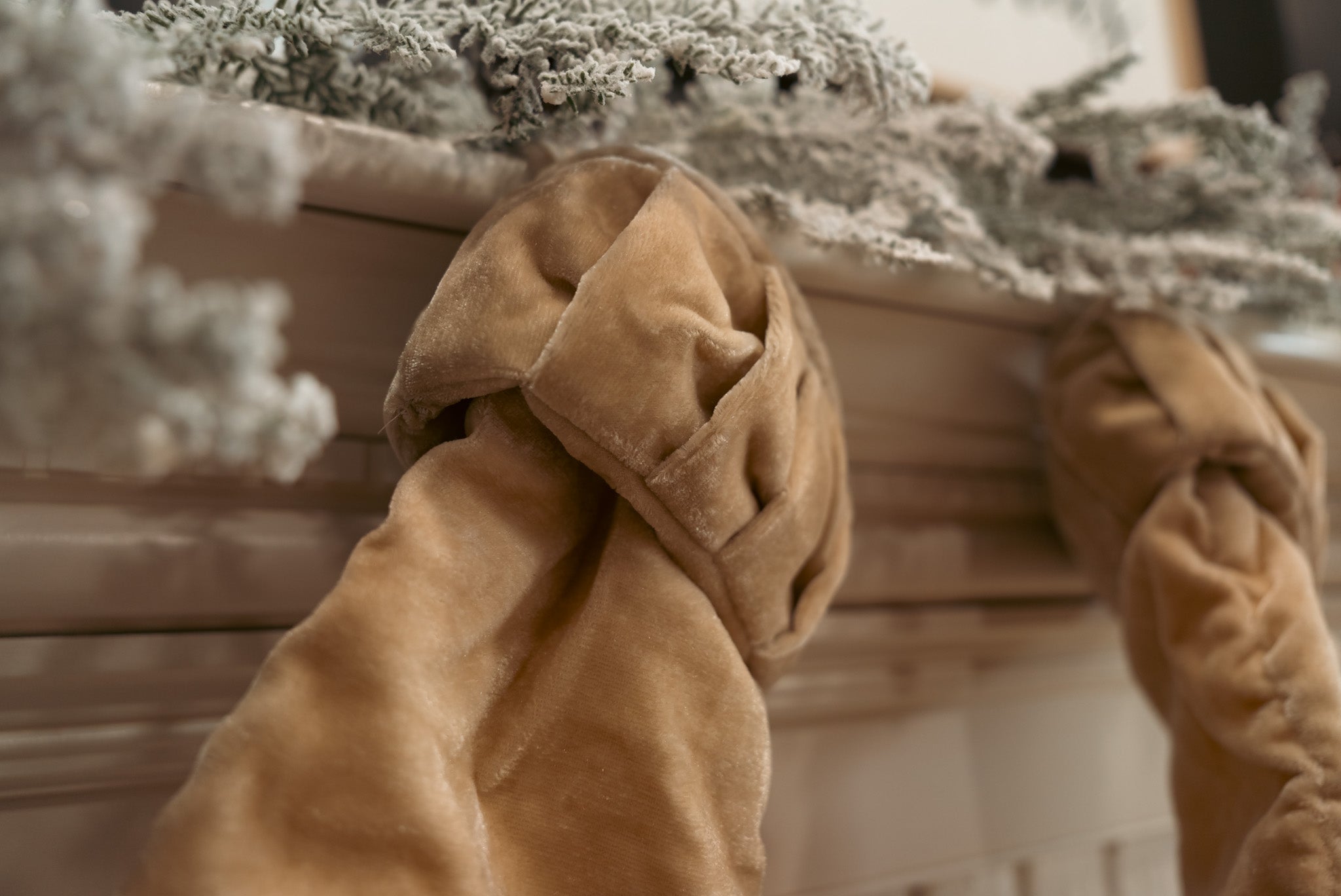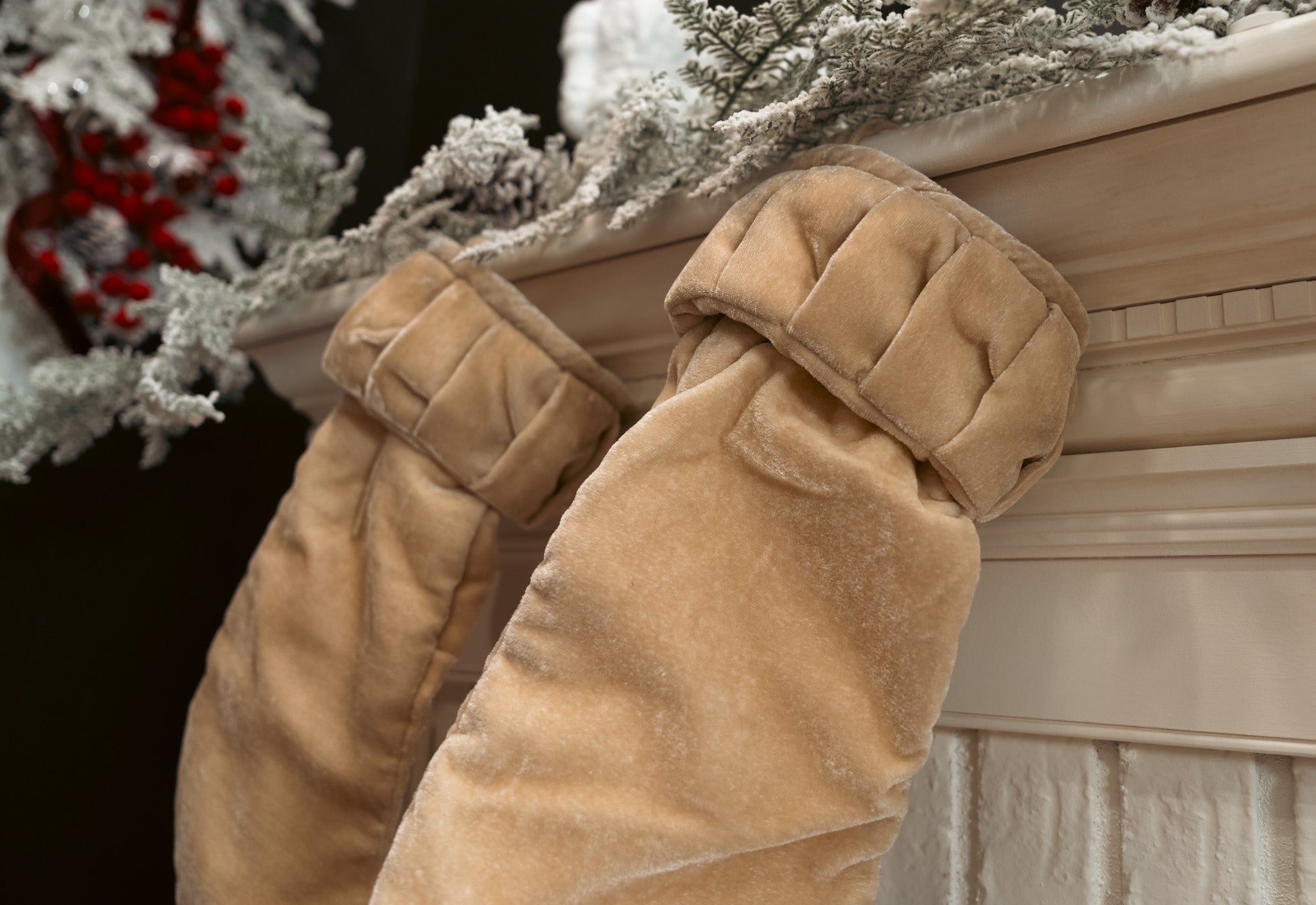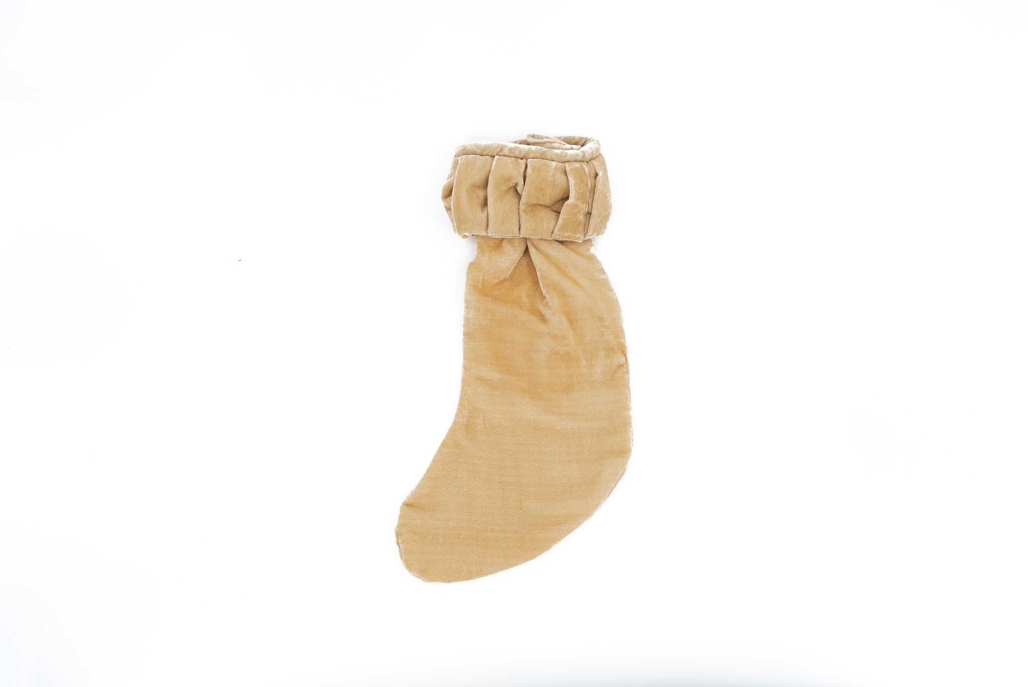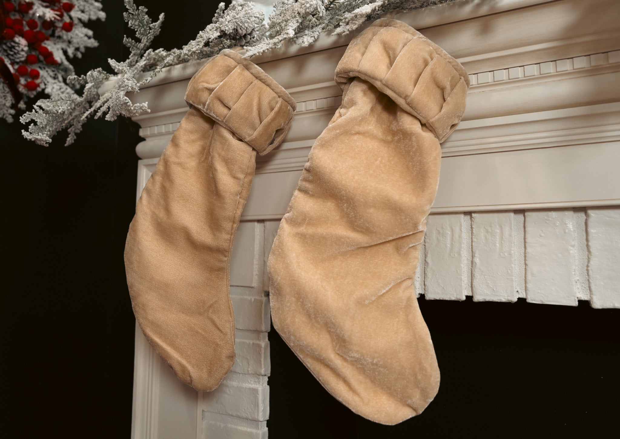 Bring timeless elegance to your holiday mantel with our Champagne Velvet Stocking. Crafted from luxuriously soft velvet in a warm champagne hue, this stocking adds a refined touch of holiday glamour to any space. The gathered cuff design gives it a plush, tailored look that complements both classic and modern décor.