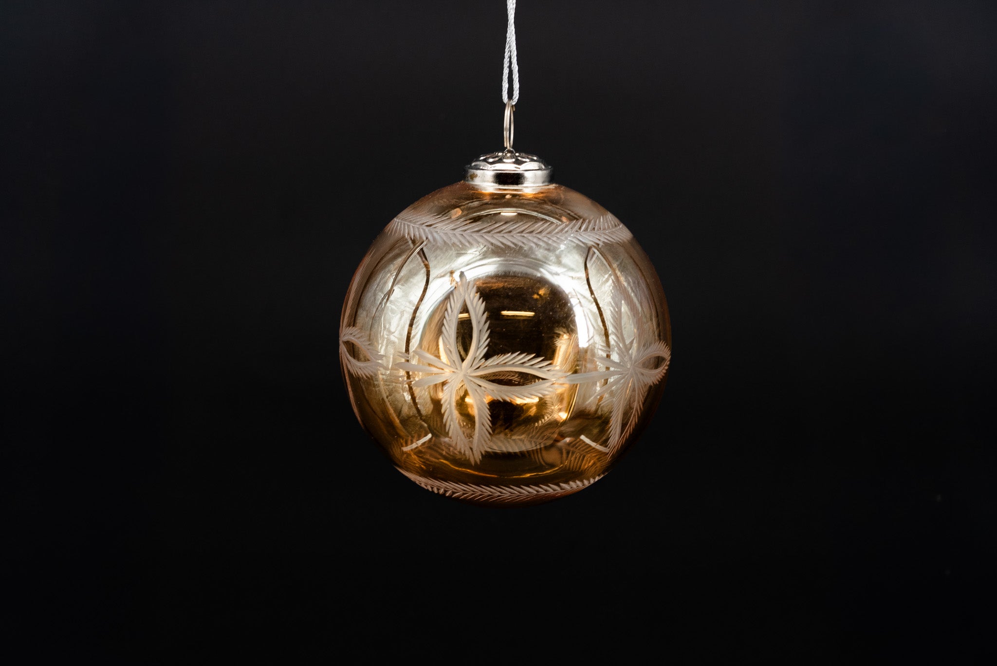 Elevate your holiday décor with this stunning Clear Gold Fluret Ornament, crafted from glass and finished with an elegant semi-transparent golden tint. Intricate etched detailing creates a delicate floret pattern that catches the light beautifully, giving it a timeless, heirloom-quality charm. Whether displayed on a tree, wreath, or garland, this ornament brings a soft, warm glow and a touch of refined sophistication to any space.