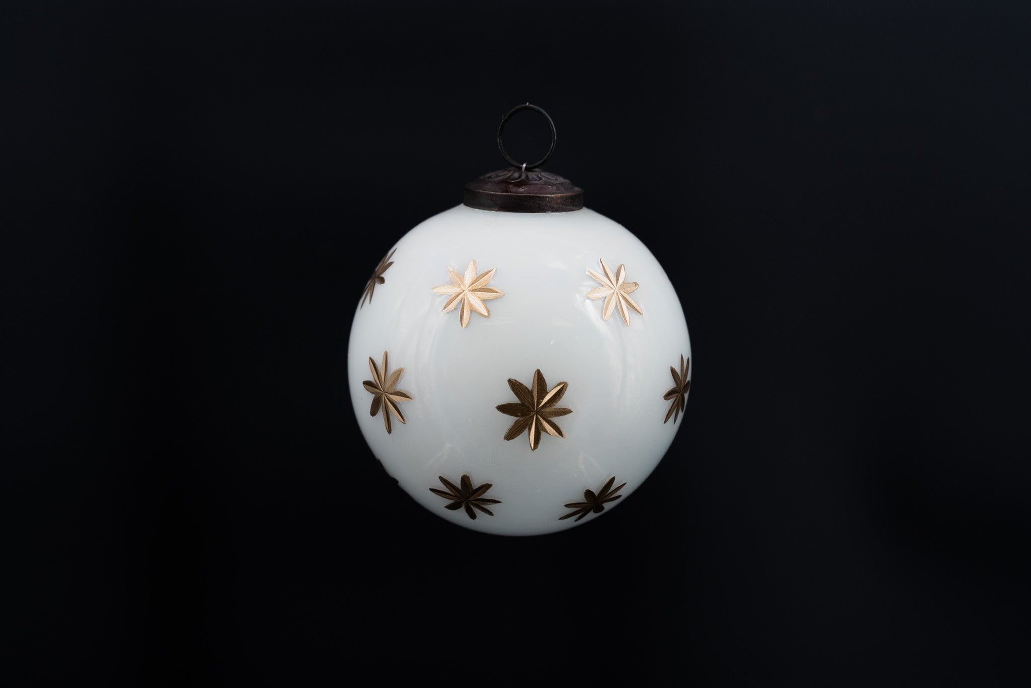 Timeless and radiant, the Etched Gold Star Ivory Ornament captures the beauty of classic holiday design. Its smooth ivory glass surface is delicately adorned with raised gold stars that glimmer softly under the lights, bringing an elegant celestial touch to your tree. A perfect blend of sophistication and charm, it’s a piece that complements both modern and vintage-inspired décor.