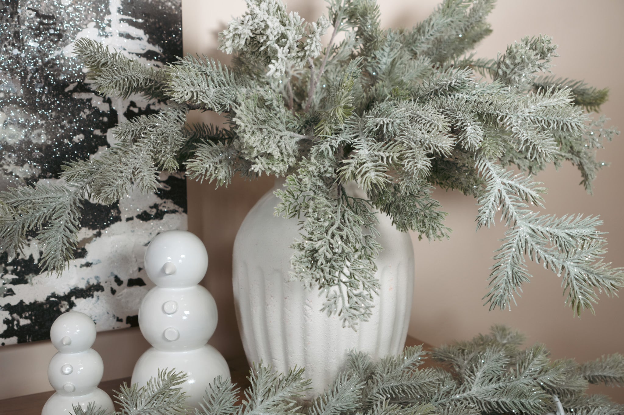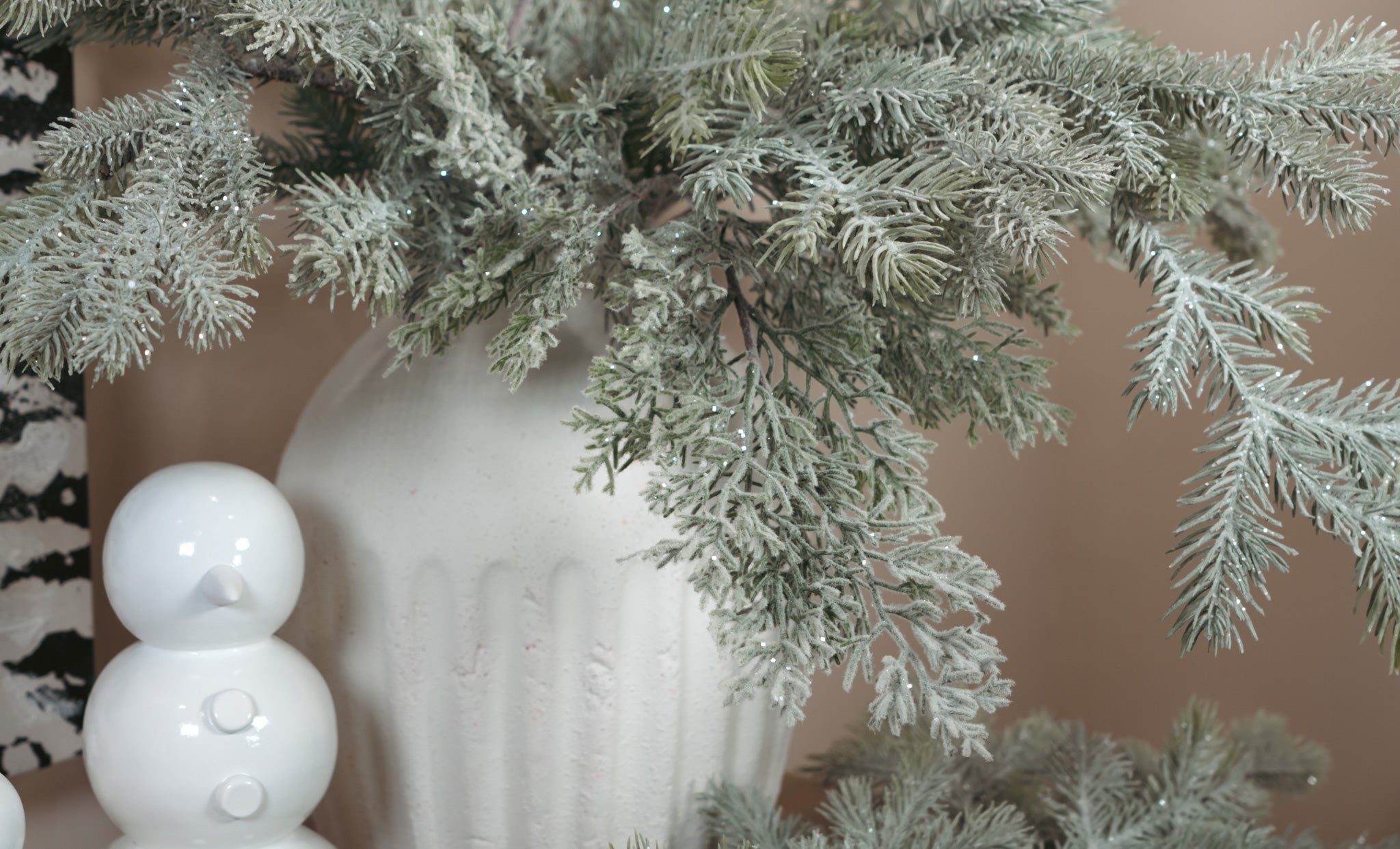 The Frosted Cedar Spray brings a touch of peaceful, snow-dusted elegance to your holiday decorating.