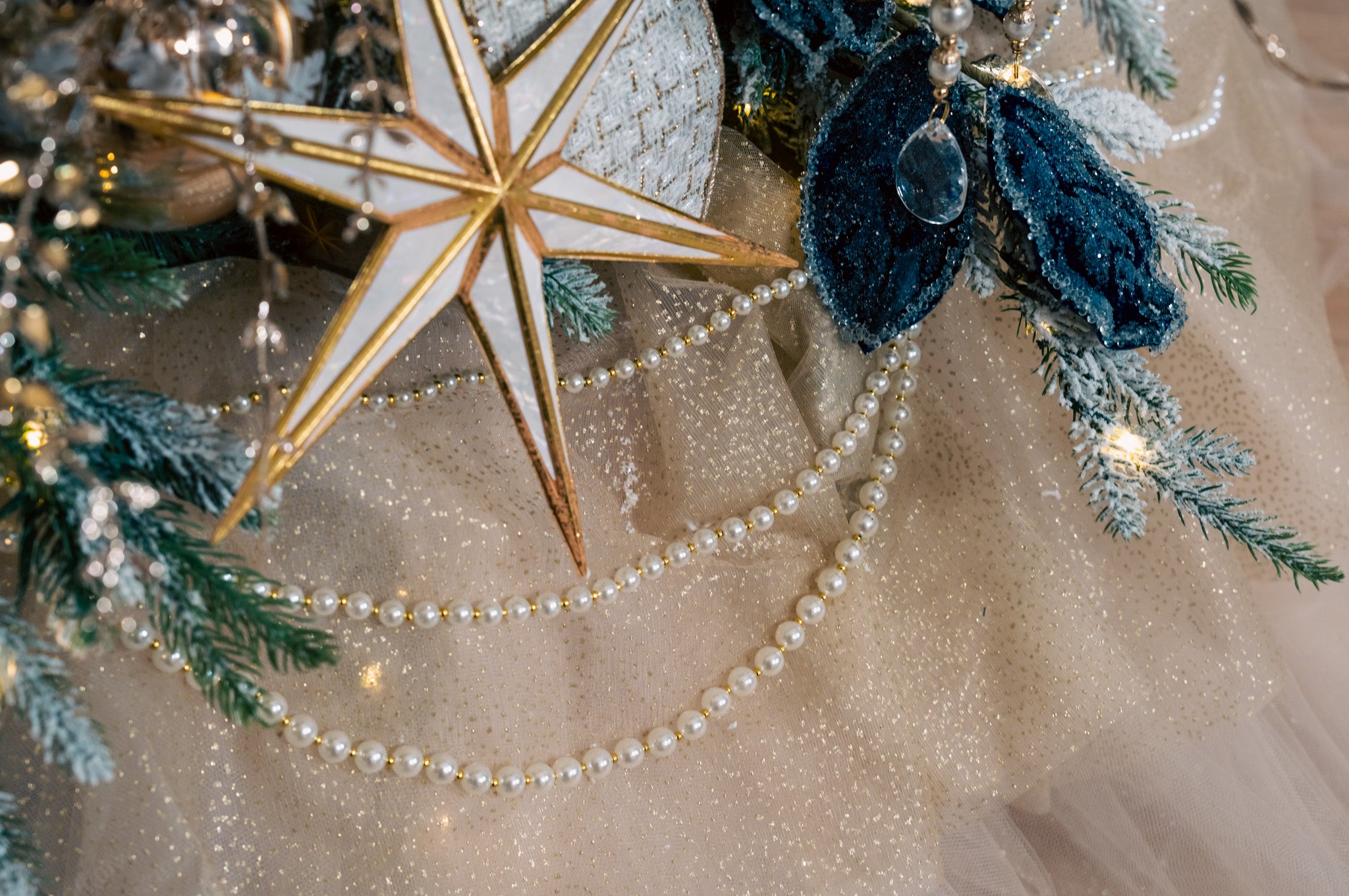 Elevate your holiday décor with timeless elegance. Our Layered Pearl Garland drapes beautifully with three cascading strands of luminous pearls, creating a luxurious, graceful effect wherever it’s displayed. Whether paired with classic gold accents or mixed into a modern winter palette, this garland brings a refined, heirloom-quality touch to your tree, mantle, or holiday arrangements.