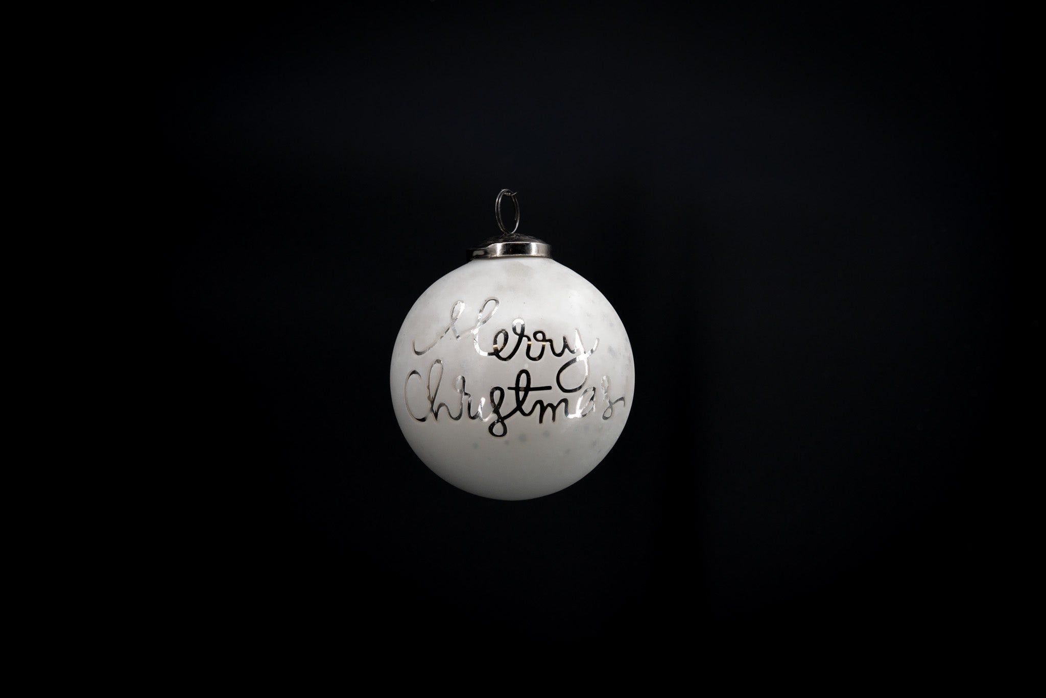 Celebrate the season with timeless elegance using our Merry Christmas White Ornament. This 4" glass ornament features a soft white finish with the words “Merry Christmas” written in gleaming metallic script, creating a beautiful balance of warmth and sophistication.