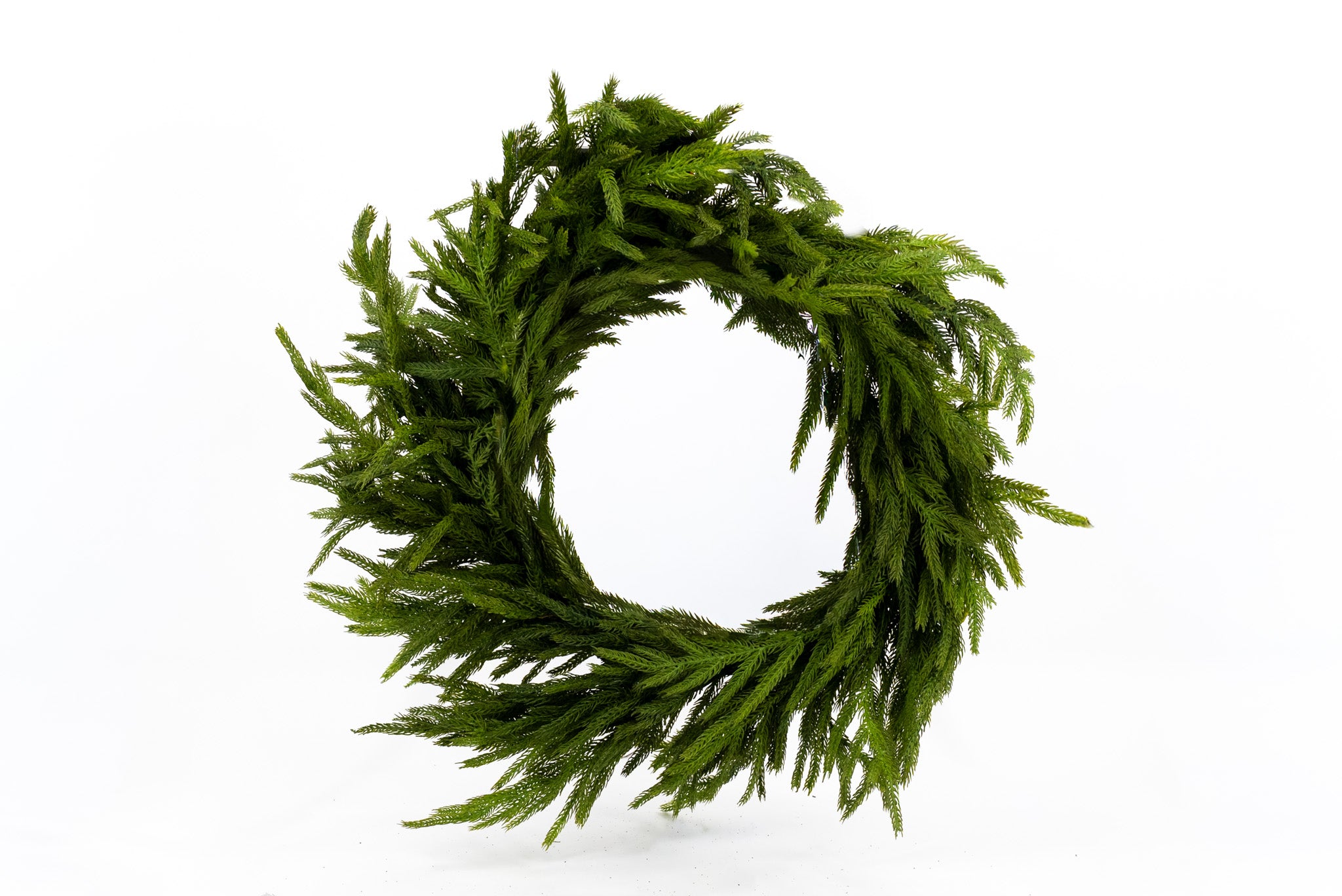 Classic, lush, and endlessly versatile — our Natural Touch Norfolk Pine Wreath brings the serene beauty of fresh greenery to your home year after year. Crafted with lifelike pine branches that mimic the soft texture and graceful flow of real Norfolk pine, this wreath makes an elegant statement whether hung on your door, mantel, or wall. Style it as-is for a simple, natural look, or embellish with ornaments, ribbons, and lights to suit your seasonal décor.