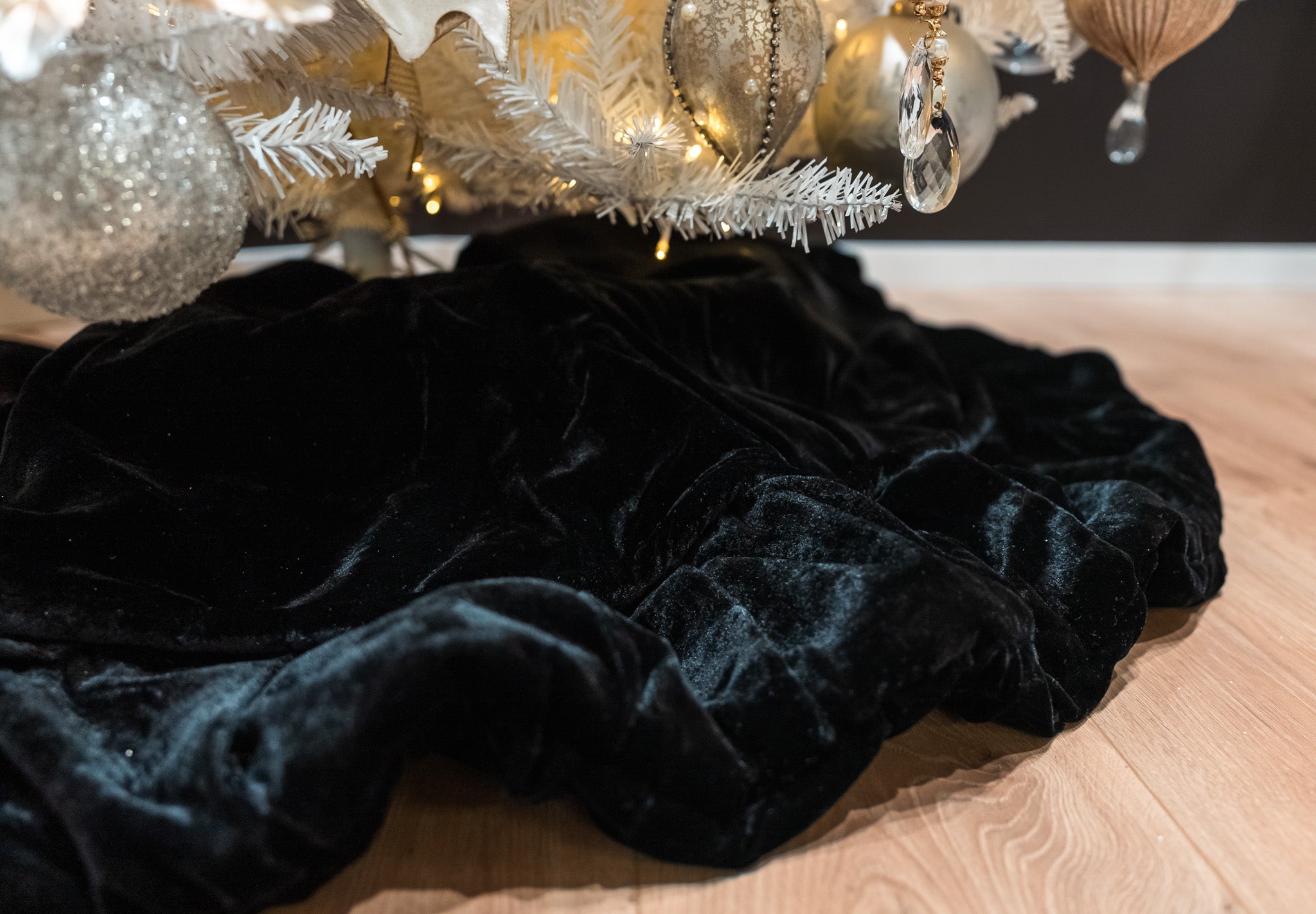 Complete your holiday display with the luxurious charm of our Plush Black Velvet Christmas Tree Skirt. Crafted from ultra-soft velvet, this elegant piece adds a rich, festive foundation to your tree while coordinating perfectly with our matching stockings, ribbons, and bows for a cohesive and elevated holiday look.