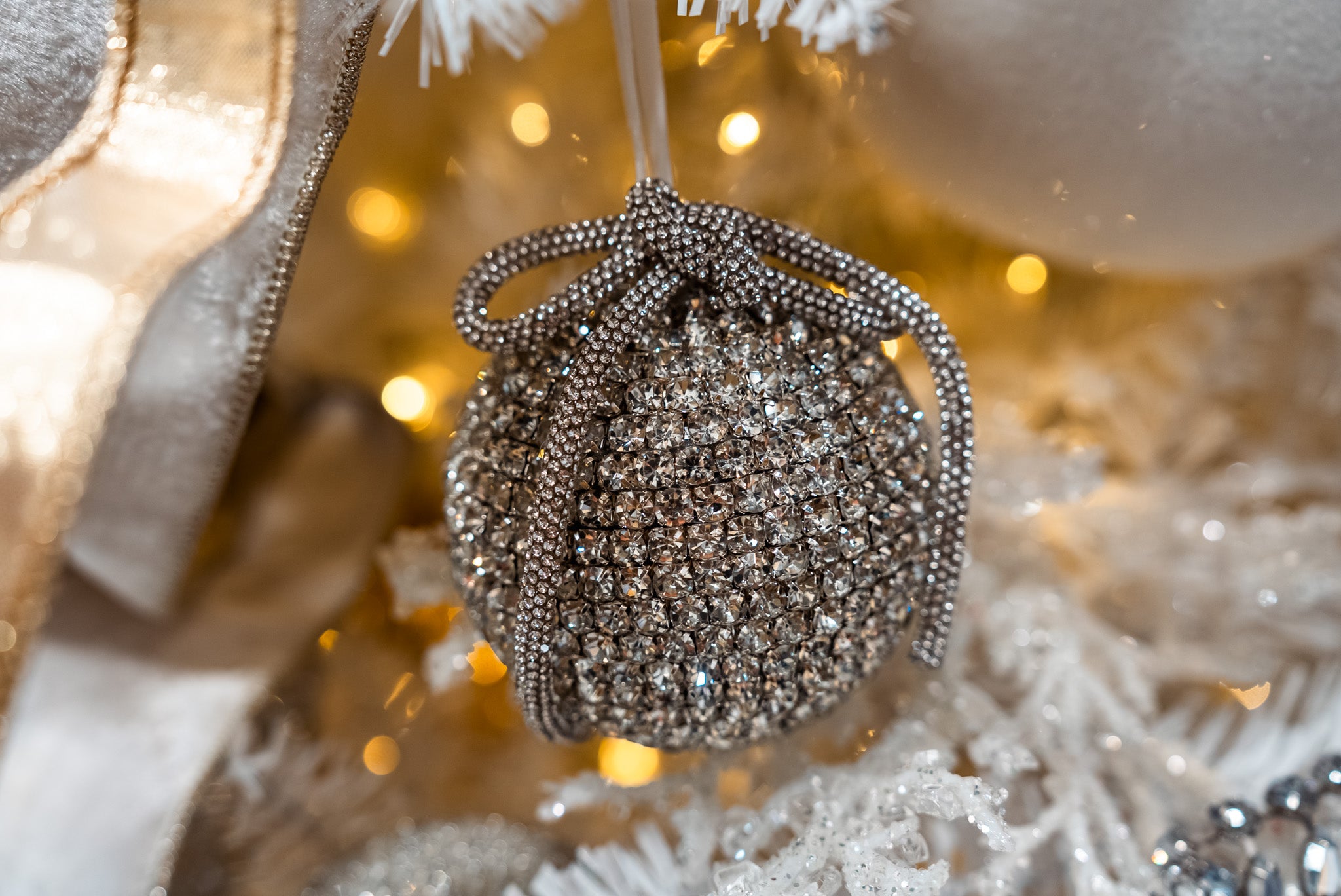 Bring dazzling elegance to your holiday décor with our Silver Diamond Bow Ornaments. Each ornament is wrapped in brilliant crystal-like stones that catch the light beautifully, topped with a sparkling diamond-encrusted bow for an ultra-luxurious finish. Whether hung on your tree, displayed in a bowl, or added to garlands, these ornaments instantly elevate any space with a touch of shine and sophistication.