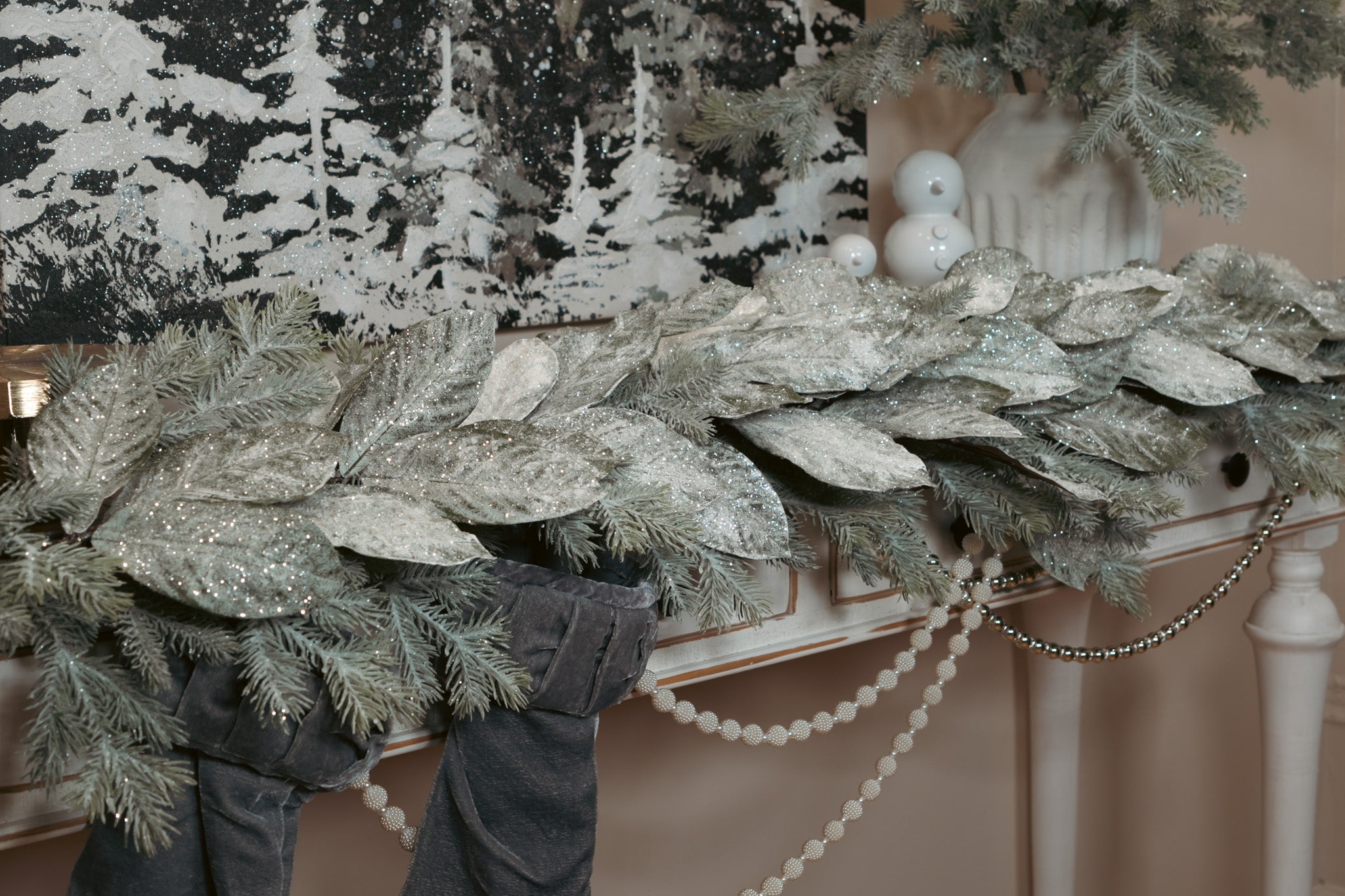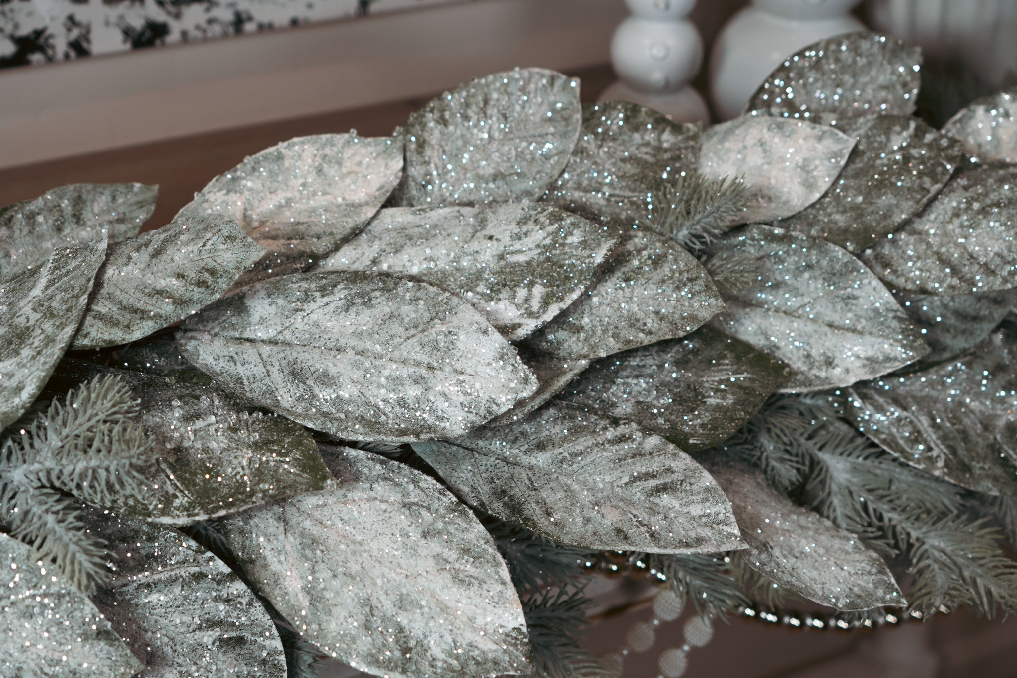 The Snowed Magnolia Leaf Garland captures the beauty of a winter’s first frost with layers of velvety magnolia leaves dusted in soft white and shimmering glitter. Measuring 48 inches, this garland combines lush texture and subtle sparkle to create a sophisticated and timeless holiday accent. Whether draped across a mantel, woven through banisters, or styled along a festive tablescape, it brings an elegant, frosted charm to any space.