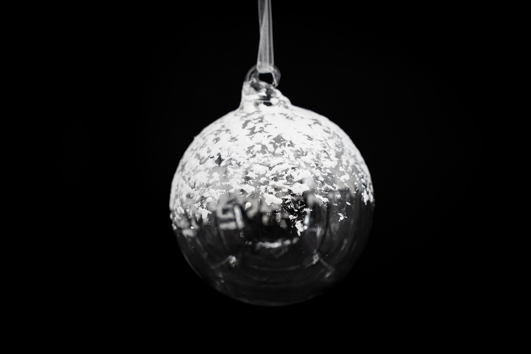 Delicate and wintry, our Snowy Glass Ornament captures the quiet beauty of freshly fallen snow. Each clear glass sphere is lightly dusted with a frosted snow finish, creating a graceful shimmer that reflects the glow of your holiday lights. Perfect for adding a serene, natural touch to your tree or garland.