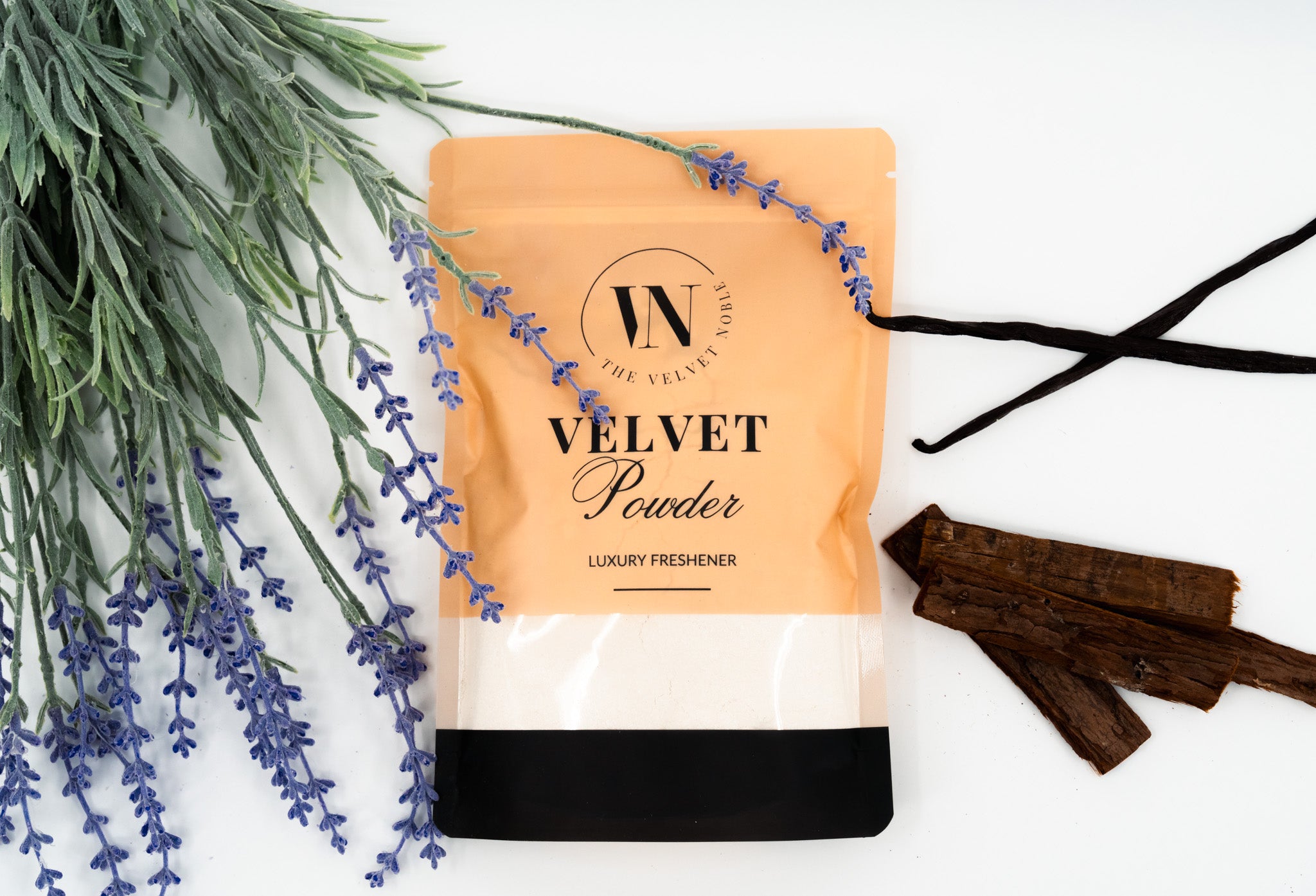 Velvet Powder is a luxury Carpet and Upholstery deodorizer. Simple sprinkle on the desired surface, let sit for 30 minutes, then vacuum it up for long lasting effects.