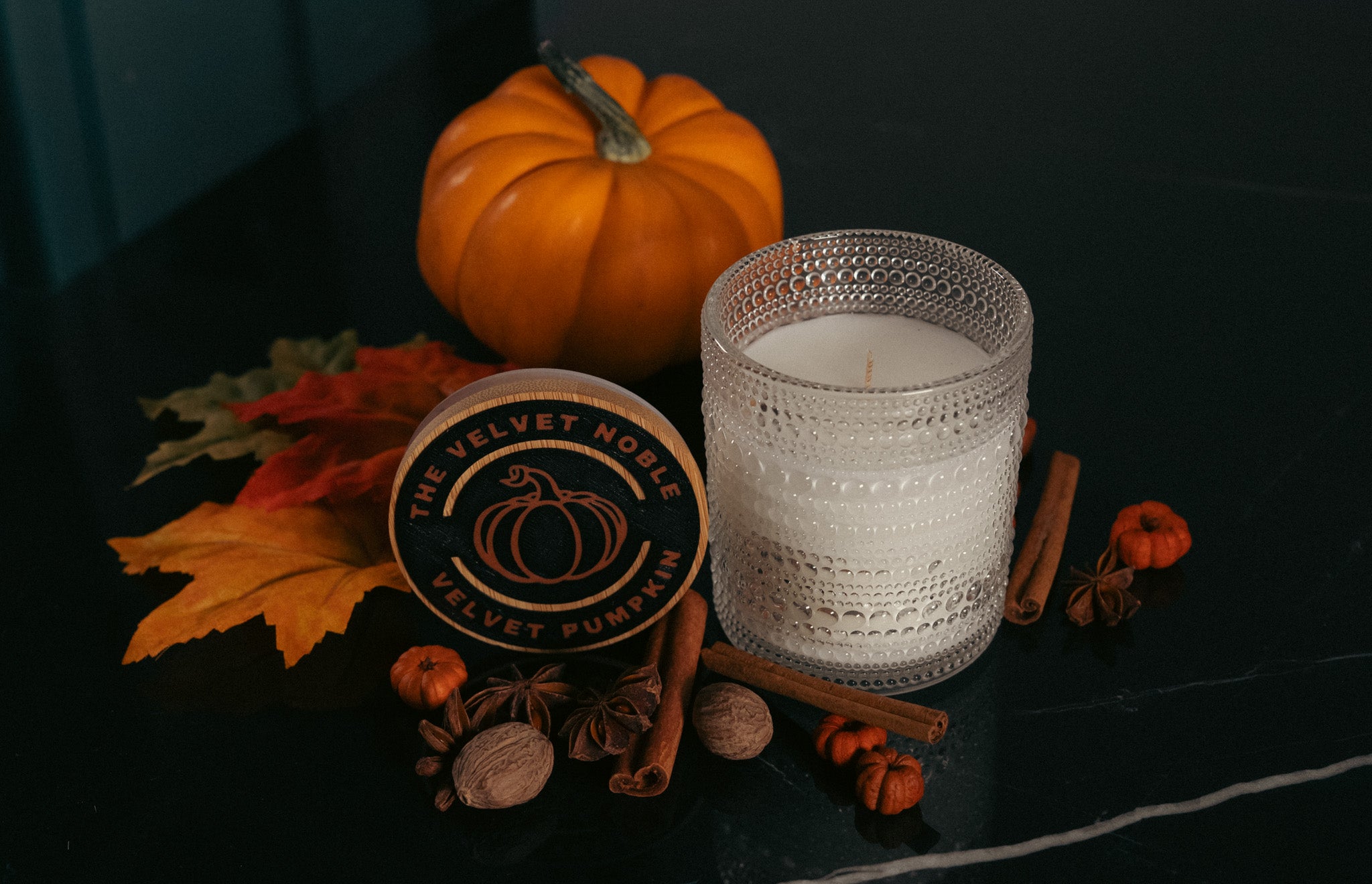 Velvet Pumpkin captures autumn at its most refined. At the center, golden pumpkin glows with warmth, wrapped in the spice of clove and nutmeg. Notes of fir weave through the fragrance, grounded by the quiet strength of cedarwood. The result is a scent that feels both cozy and sophisticated - a timeless celebration of fall’s most cherished moments.