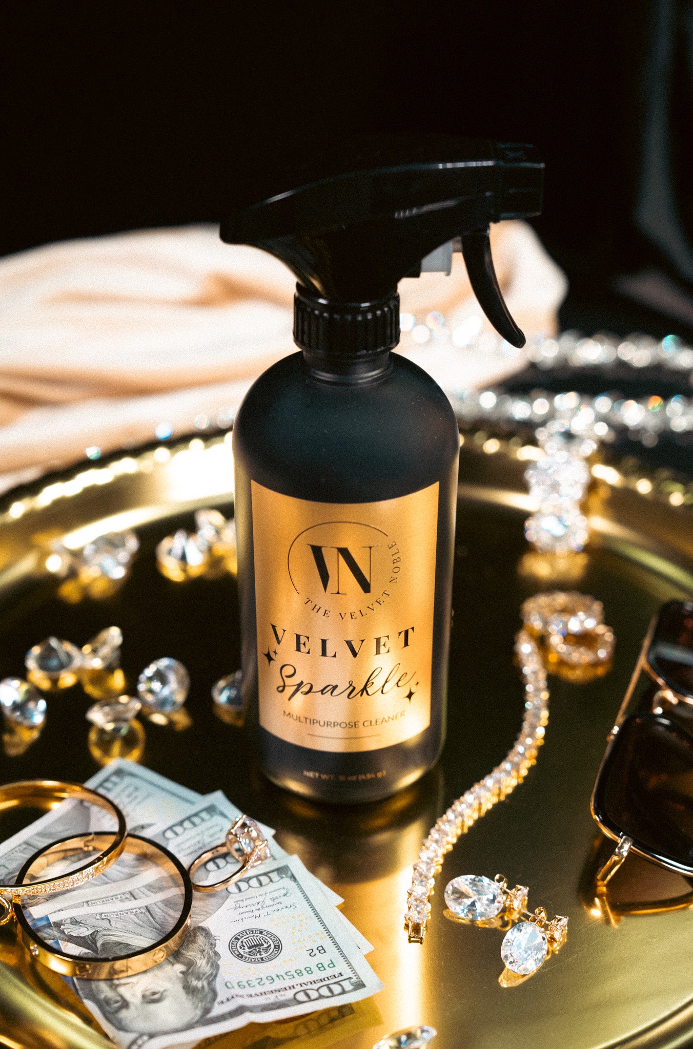 Velvet Sparkle is a luxury multipurpose spray that refreshes your home with effortless elegance. Crafted with premium ingredients and fine fragrance, it cleans and revitalizes surfaces, leaving behind a light, beautiful scent and a touch of refined freshness.