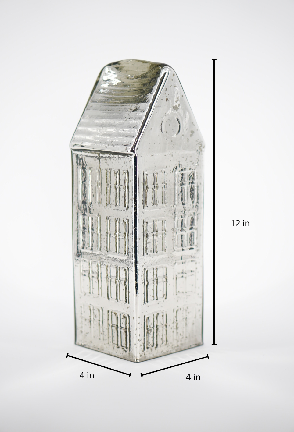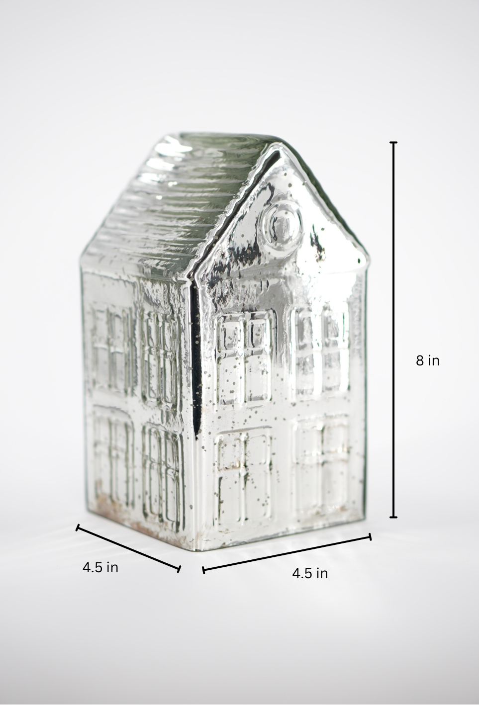 Elegant and timeless, our Mercury Glass Village Houses bring a touch of vintage holiday charm to any space. Each piece is made from beautifully reflective mercury glass, designed to catch and scatter light for a soft, enchanting glow.