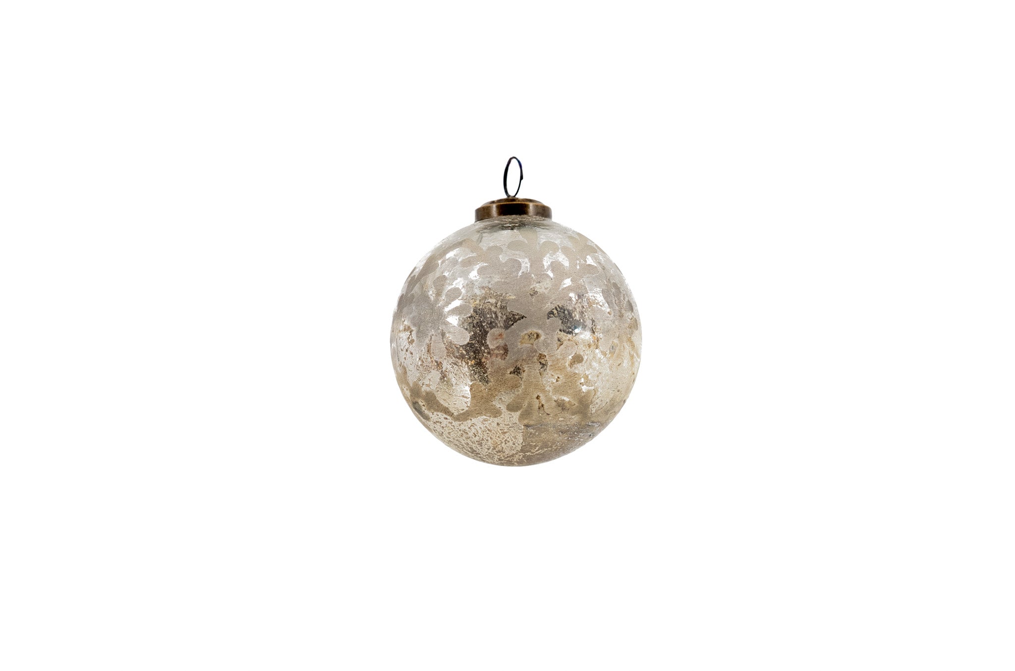 The Vintage Etched Ornament evokes timeless elegance with its antique-inspired design and delicately frosted floral etching. Crafted from glass and finished with a subtle aged patina, this 4-inch ornament brings a sense of nostalgia and warmth to your holiday décor. Its soft metallic sheen and intricate detailing make it a perfect accent for both traditional and sophisticated modern trees.