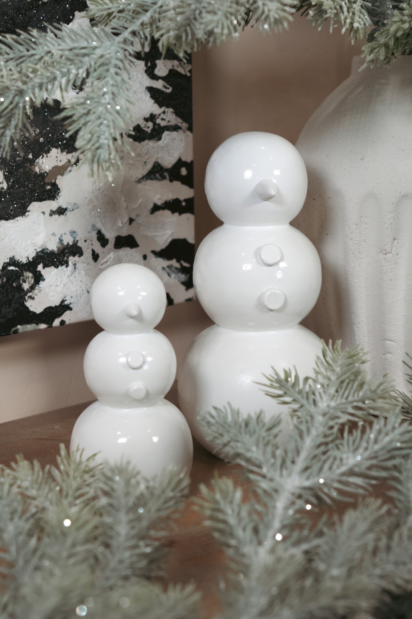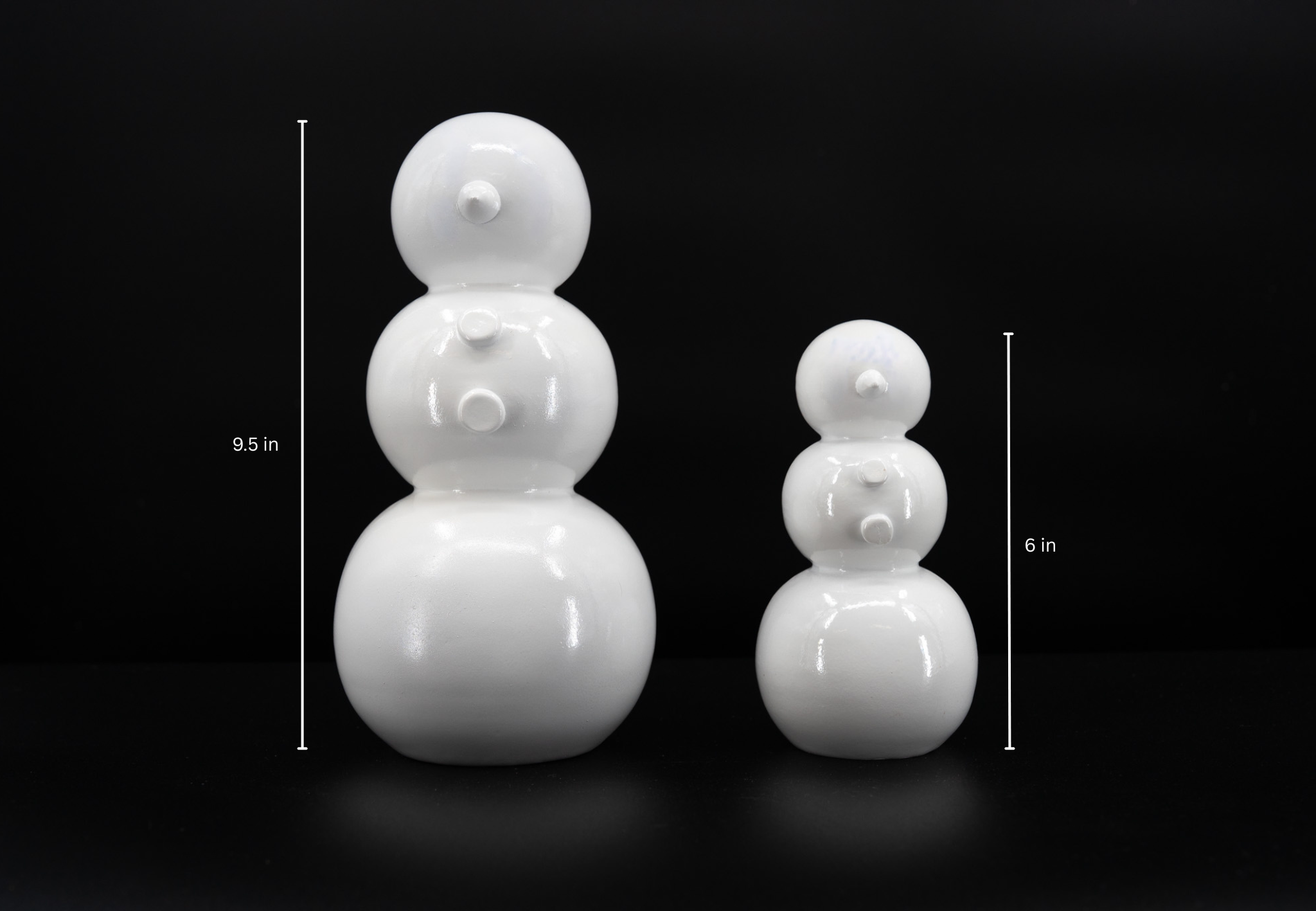 Our White Snowmen bring a touch of minimalist winter charm to any space. With their smooth, glossy finish and sculpted button details, these pieces offer a modern twist on a timeless holiday figure.